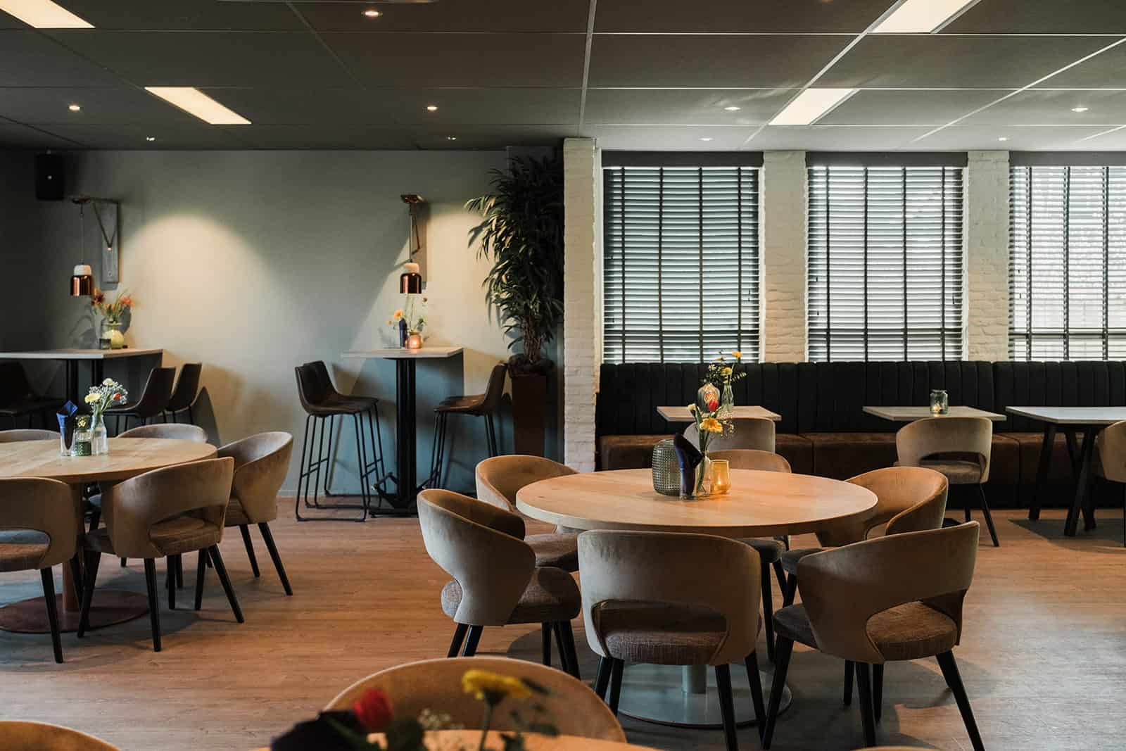 De Tromp Zaal is een sfeervolle, compacte ruimte met karakter en een warme uitstraling. Met een mix van hoge en lage zitjes is het de ideale plek voor toegankelijke zakelijke bijeenkomsten, diners of borrels.